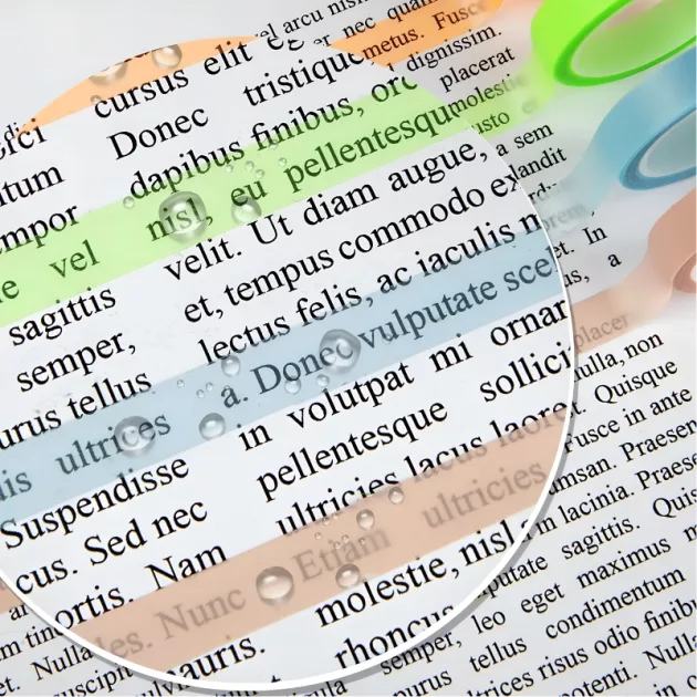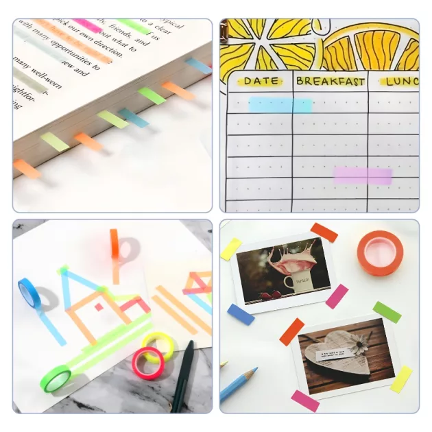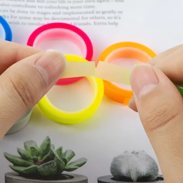 Folosesc această bandă la ora de științe. Îmi place să văd dungi colorate în cartea mea și profesoara a zis că notițele mele sunt foarte clare acum.