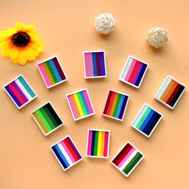 Așa de multe culori într-o cutie mică! Perfect pentru a ne preface că suntem tigri și zâne. Ușor de dat jos înainte de culcare.
