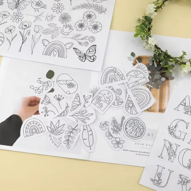 Copilul tău va adora să dea viață desenelor folosind aceste foi ingenioase. Nu sunt necesare abilități complicate de trasare sau desen pentru rezultate frumoase. Copiii vor zâmbi larg când vor vedea cum florile înfloresc pe hainele sau accesoriile lor.