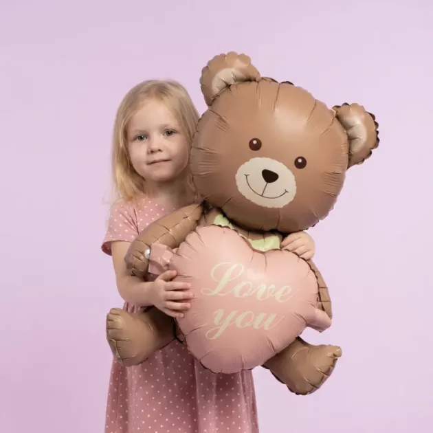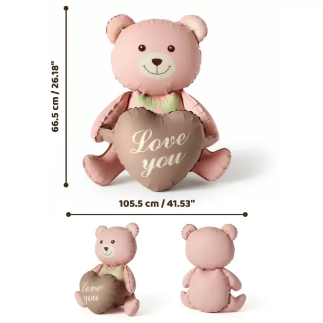 Set 2 baloane din folie cu ursuleți și inimă, pentru decor de aniversare