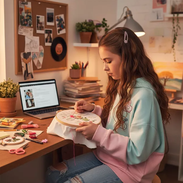 Activitate fără ecran - Mâinile rămân ocupate în timp ce mintea se concentrează pe proiecte creative. Timpul productiv înlocuiește distragerile digitale cu ceva semnificativ.