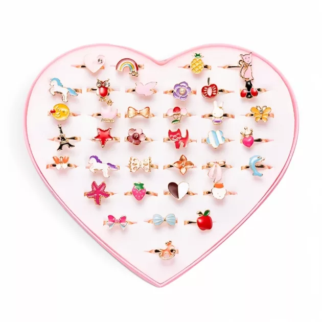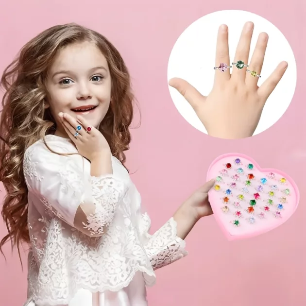 Oferă-i copilului tău o surpriză încântătoare cu această colecție fermecătoare de inele! Fiecare piesă are un design unic, aducând un plus de distracție la jocul de-a îmbrăcatul. Cu 36 de opțiuni disponibile, cel mic își poate schimba accesoriile în fiecare zi. Inelele sunt aranjate atent într-o cutie frumoasă, perfectă pentru cadouri de ziua de naștere sau ocazii speciale.