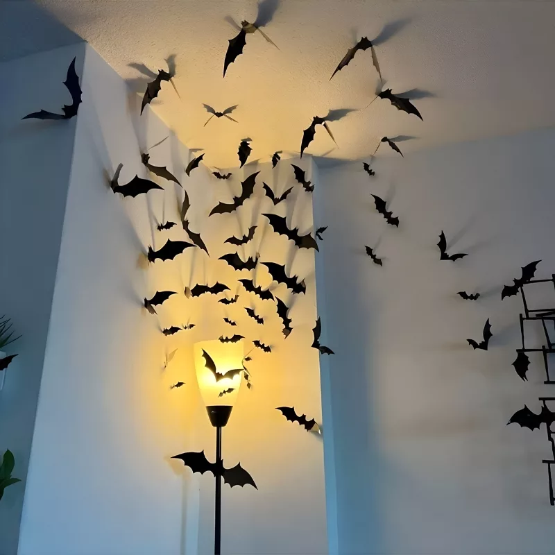 Acești lilieci au făcut camera mea să arate super înfricoșător. Mărimile diferite sunt distractive pentru că poți să-ți creezi propria familie de lilieci pe ușă!