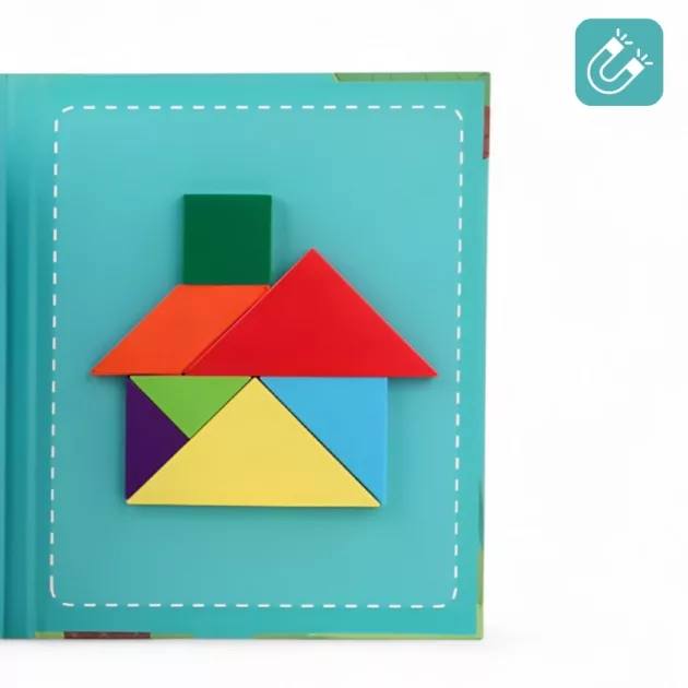 Am jucat cu acest tangram în fiecare seară după cină. Mama ni se alătură și facem mașini, rachete sau păsări. Magneții țin piesele bine și nu cad.
