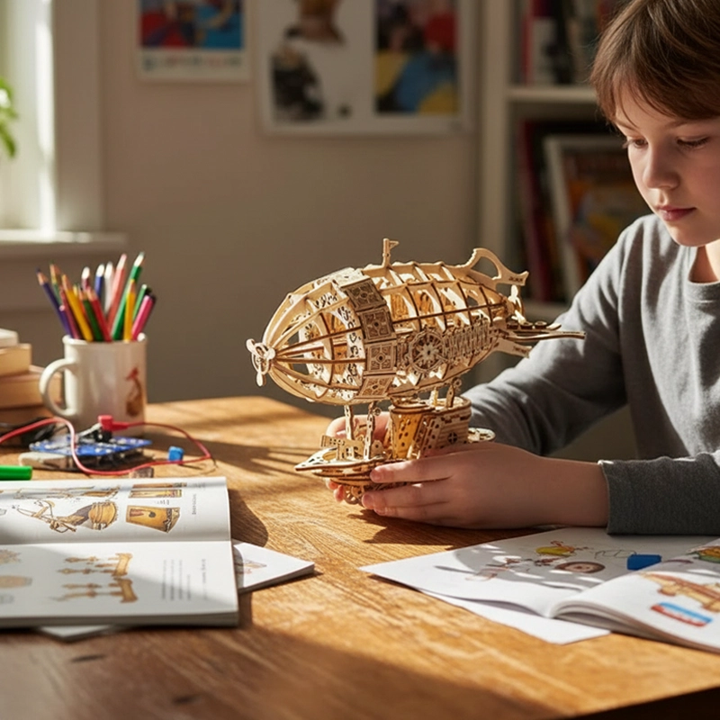 Puzzle 3D din Lemn – Kit de Construcție Dirijabil DIY