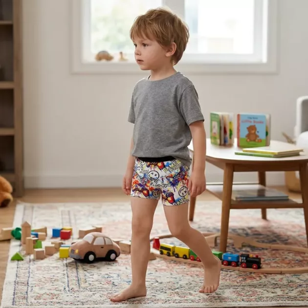 Acești chiloți sunt un succes la noi acasă. Cusăturile stau plate, fără margini care zgârie, iar materialul elastic ține pasul cu roțile fiului meu.