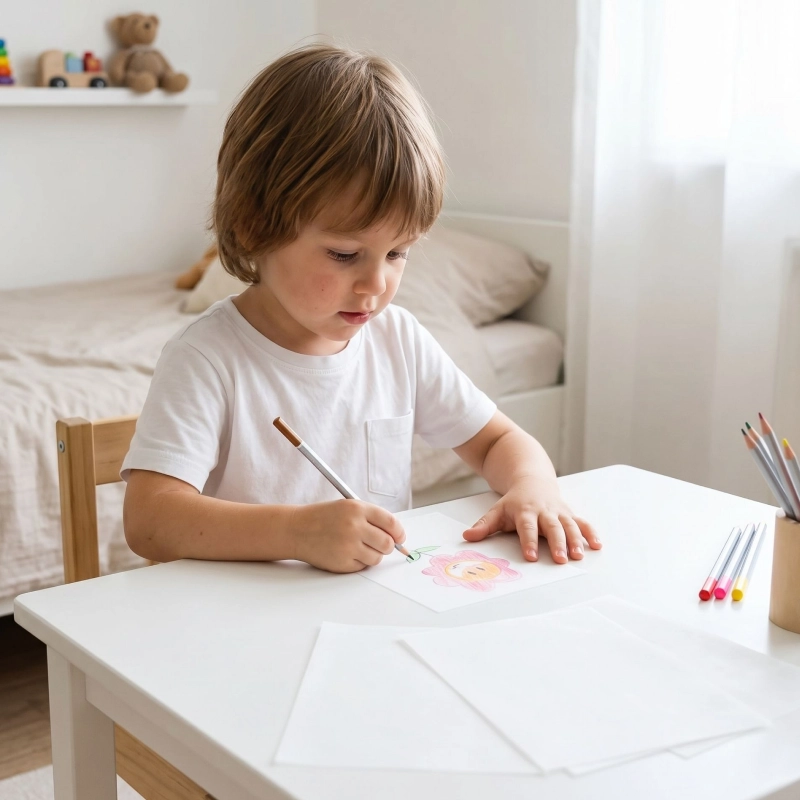 Învățare practică - Prin desen și decupare, copiii exersează abilități motorii esențiale. Această activitate le consolidează încrederea și susține dezvoltarea artistică.