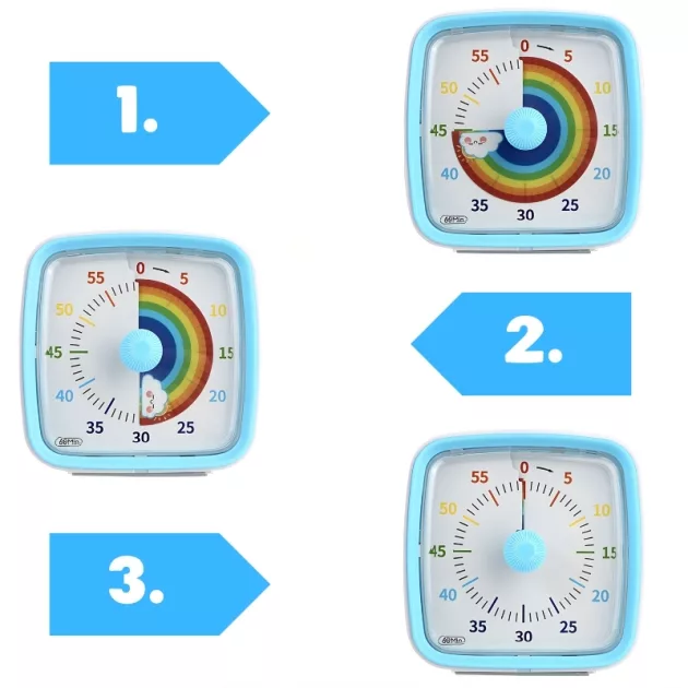 Numărătoarea inversă face treburile mai puțin dificile. Copiilor le place să vadă timpul trecând cu schimbarea culorilor!