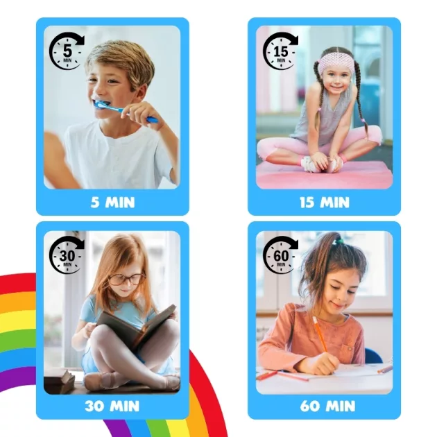 Afișaj luminos și captivant - Instrumentul colorat îi ajută pe cei mici să urmărească timpul fără efort. Designul simplu îi menține atenți pe copii și conștienți de rutina zilnică.