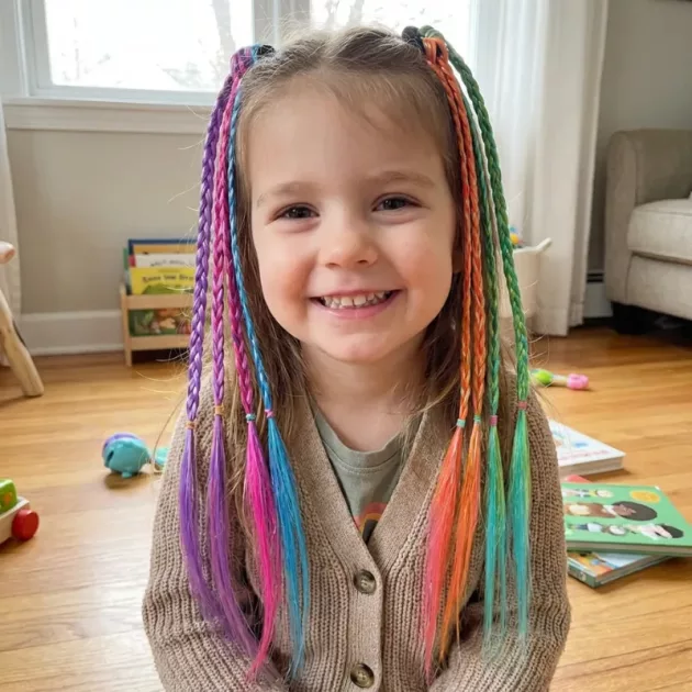 Nepoata mea combină câte două odată pentru culori trăznite. E distractiv să-i văd creativitatea cum crește doar din faptul că se joacă cu coafura ei în fiecare dimineață.