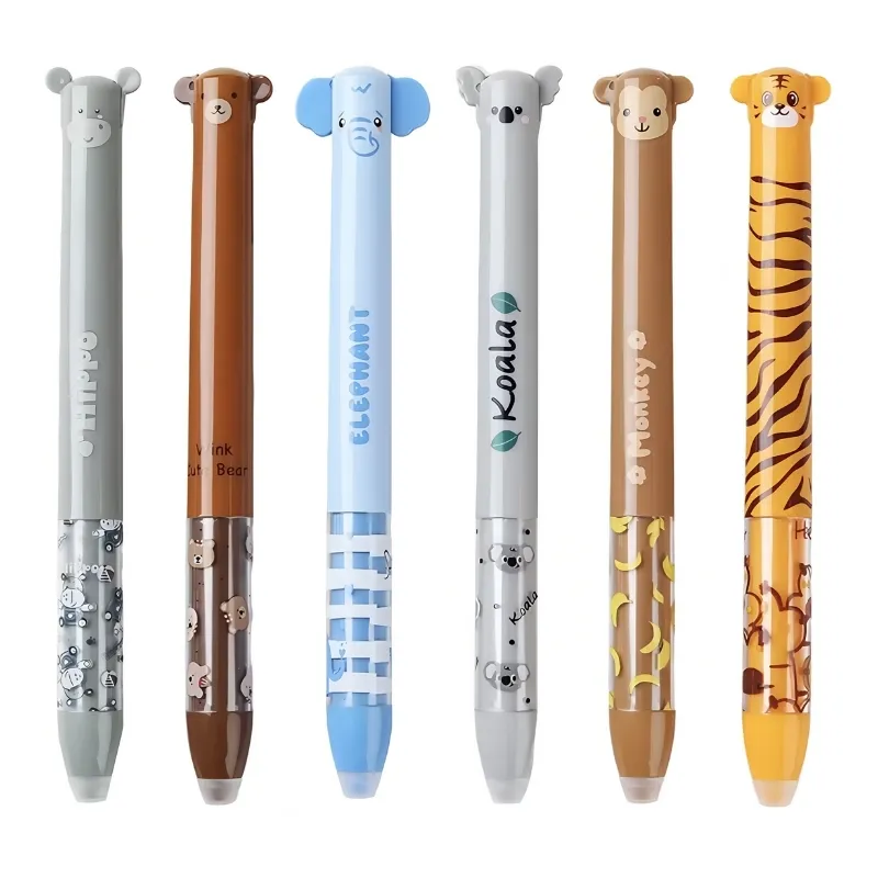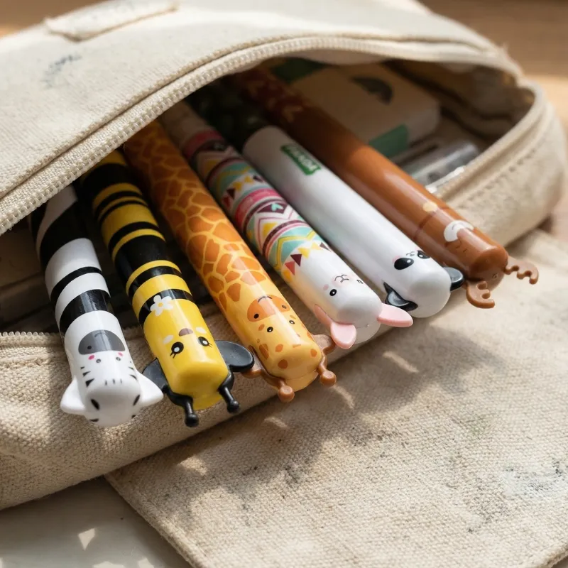 Temele la matematică arată grozav acum că pot șterge micile greșeli imediat. Stilourile obișnuite pot face mizerie, dar cele cu animale îmi păstrează munca ordonată.