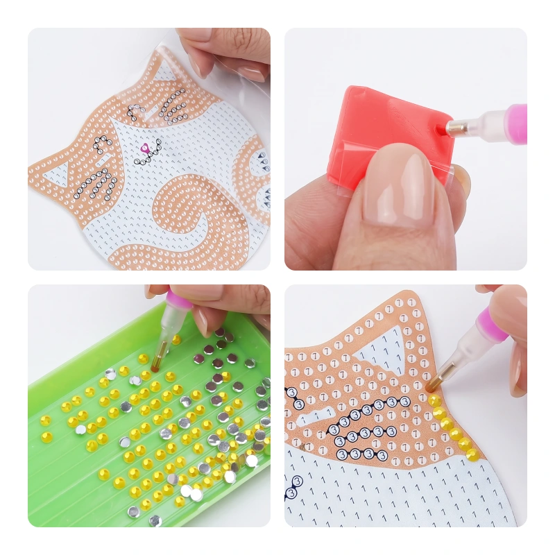 Am luat acest set pentru nepoata mea. I-a plăcut să aleagă culorile și să lipească pietricelele. Pisicile terminate arată adorabil pe măsuța noastră de cafea.