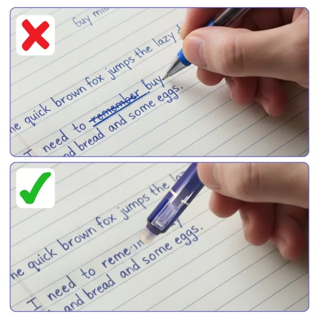 Temele mele arată mereu îngrijit acum. Am șters răspunsurile greșite la un test și nimeni nu a știut! Aceste pixuri fac corecturile foarte rapide.