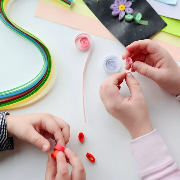 Nepoatei mele îi place să facă flori și inimioare cu aceste benzi viu colorate. E mai concentrată când le rulează și le așază, iar rezultatele sunt mereu atât de frumoase.