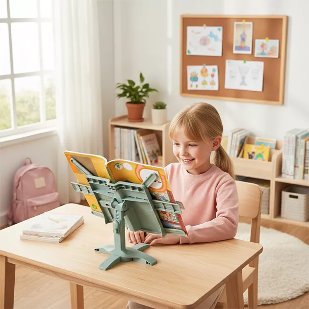 Copiii adesea stau cocoșați când citesc perioade lungi de timp. Acest suport pentru cărți menține materialul la înălțimea și unghiul potrivite. Gâtul și spatele lor simt confortabil de fiecare dată când învață.