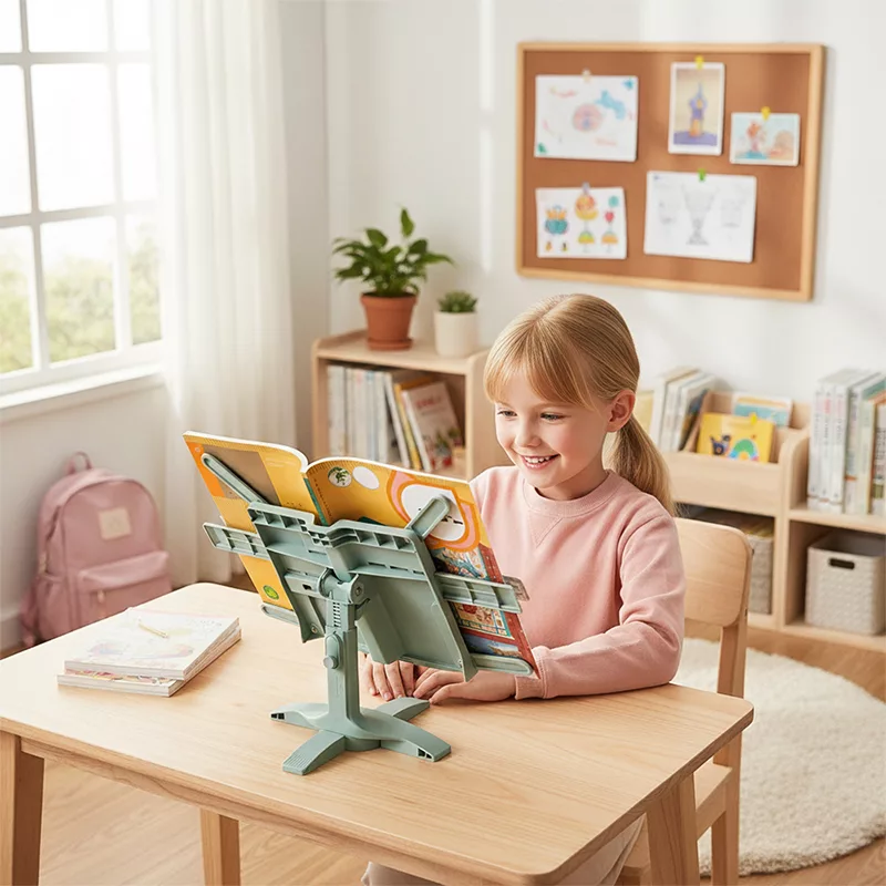 Confort hands-free - Paginile rămân deschise în timp ce mâinile mici sunt libere pentru a lua notițe. Temele și muzica pot fi urmărite mai ușor, fără bătăi de cap.