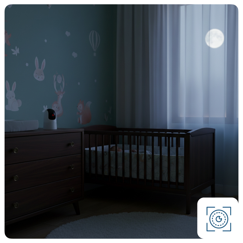 Video clar ca cristalul indiferent de ora. Vorbesc cu copilul meu ori de câte ori se trezește și îi face plăcere să-mi audă vocea.
