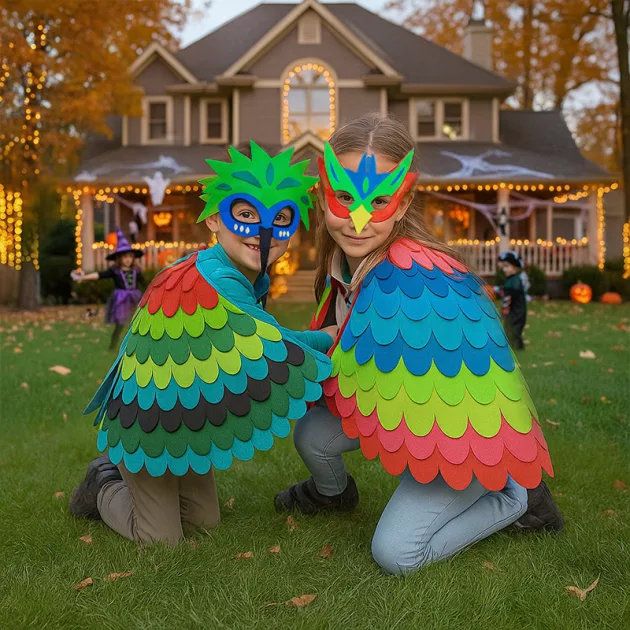 Minunat pentru zilele de costumare! Fiul meu a folosit masca pentru joaca de-a pasărea și și-a implicat și fratele.