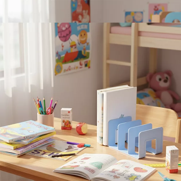 Suportul de birou îmi ține toate cărțile în ordine și pot să-mi găsesc temele foarte repede. Chiar îmi face spațiul de studiu ordonat și ușor de folosit.