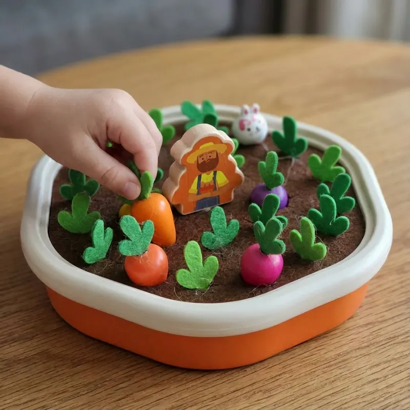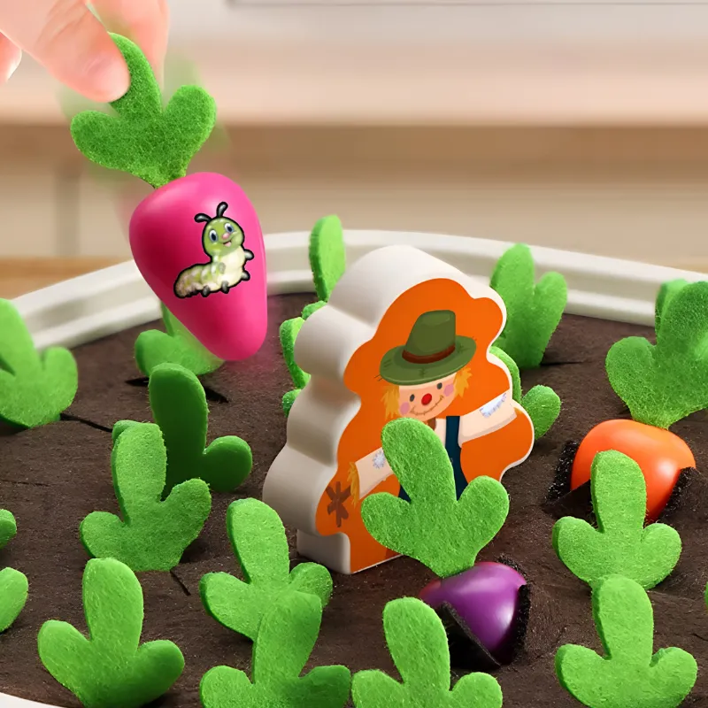 Abilități Motorii - Tragerea și plasarea pieselor încurajează controlul și mișcările precise ale mâinii. Prinderea și mutarea fiecărei legume dezvoltă dexteritatea și coordonarea.