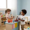 Jucăria îi ține pe copii ocupați și tot inventează jocuri noi cu magazinul. Este și rezistentă—a supraviețuit câtorva căzături fără probleme.