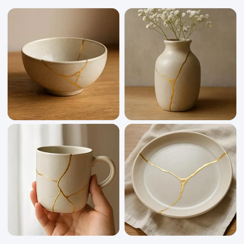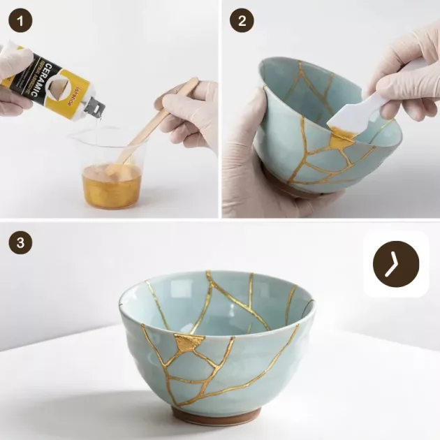 Nu sunt foarte priceput la lucrări manuale, dar fiica mea a condus totul cu acest set. Am reparat două farfurii ciobite, iar ea tot repeta: „Vezi, greșelile încă pot arăta frumos.”