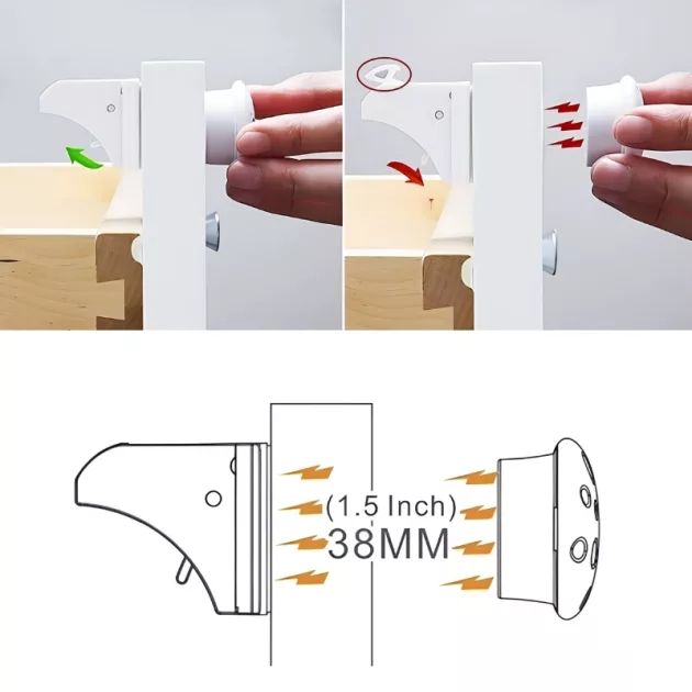 Magnetism puternic - Aceste încuietori vor menține sertarele și dulapurile bine închise. Ele folosesc un sistem magnetic puternic, împiedicând copiii să ajungă în zonele restricționate.