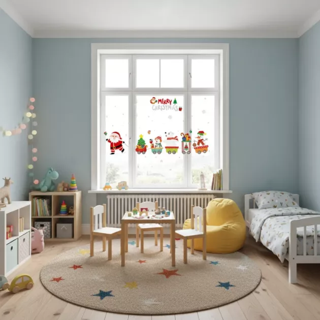 Copiii adoră să vadă camere pline de veselie festivă. Aceste modele colorate aduc instant bucurie în fiecare colț al casei. Abțibildurile se dezlipesc ușor, lăsând geamul curat și clar.