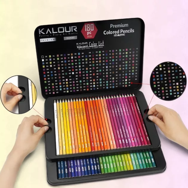 Organizare Fără Efort - Fiecare creion are un loc marcat pentru depozitare ordonată după utilizare. Cutia rezistentă păstrează setul în siguranță pentru transport facil oriunde.