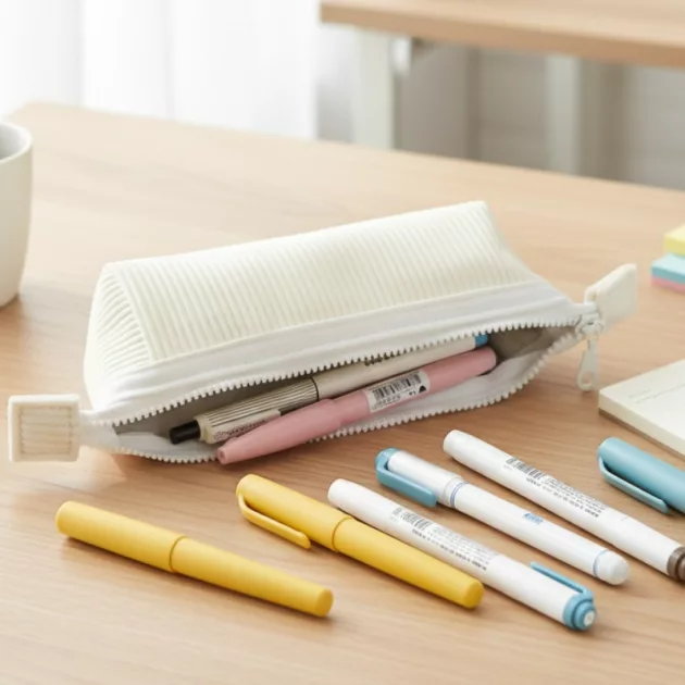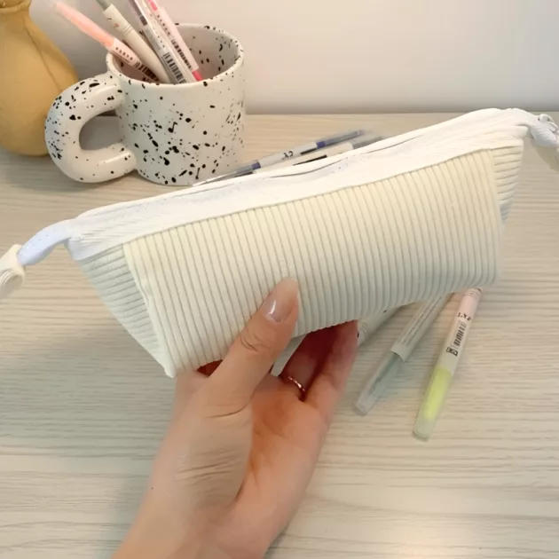 Această trusă de pixuri păstrează toate markerele mele împreună, așa că nu mai pierd nimic la școală. Cordonul de catifea se simte foarte plăcut când îl țin în mână.