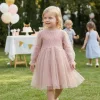 Design Elegant - Tull strălucitor și mâneci bufante adaugă instant un farmec deosebit. Fiecare detaliu aduce bucurie în orice fotografie de familie.