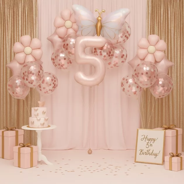 Baloanele cu fluturi au făcut ca ziua de naștere a fiicei mele să fie cu adevărat specială șiă. I-a plăcut să pozeze cu vârsta ei în cifre mari și strălucitoare pentru poze.