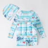 Îmi place că șapca îi acoperă capul și costumul se usucă repede. După o mică pauză de gustare, copilul meu sare imediat înapoi în piscină.