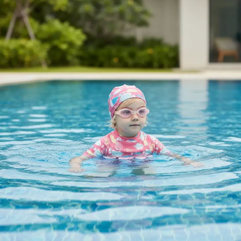 Acest costum de baie a transformat timpul petrecut în piscina din curte dintr-o grijă constantă într-o distracție relaxată. Panourile de plutire susțin mișcările ușoare de lovire din picioare, în timp ce eu stau aproape și vorbesc cu familia.