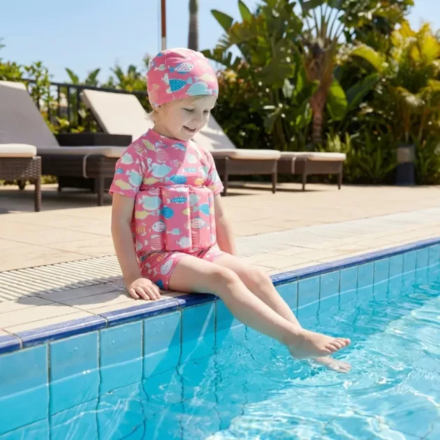 Costumul de baie cu plutire a făcut prima noastră vizită la piscina hotelului lipsită de stres. Copilul meu a stropit în zona de mică adâncime, stând drept, în timp ce eu îl supravegheam de la un pas distanță.