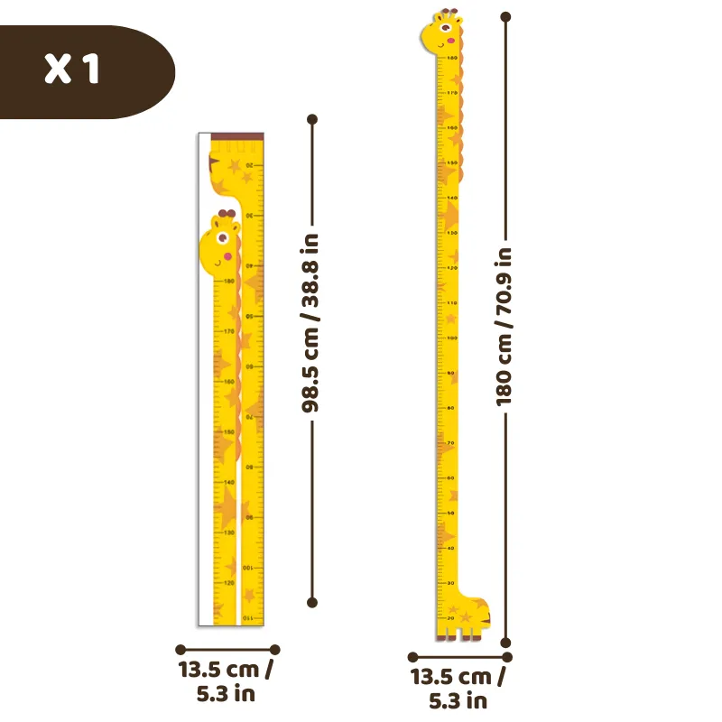 Am surprins creșterea anuală a fiului meu cu girafa. Fiecare marcaj e special, iar stickerul se dezlipește curat de pe perete. Grozav și pentru poze.