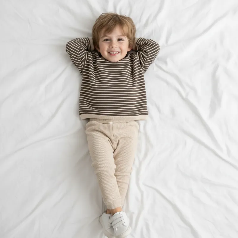 Bumbacul moale păstrează pielea confortabilă atât la joacă, cât și la odihnă. Dungile delicate creează un aspect fermecător pentru fiecare zi. Țesătura de calitate ajută la spălare ușoară, iar culorile rezistă mai mult. Îmbrăcatul devine distractiv și simplu pentru cei mici.