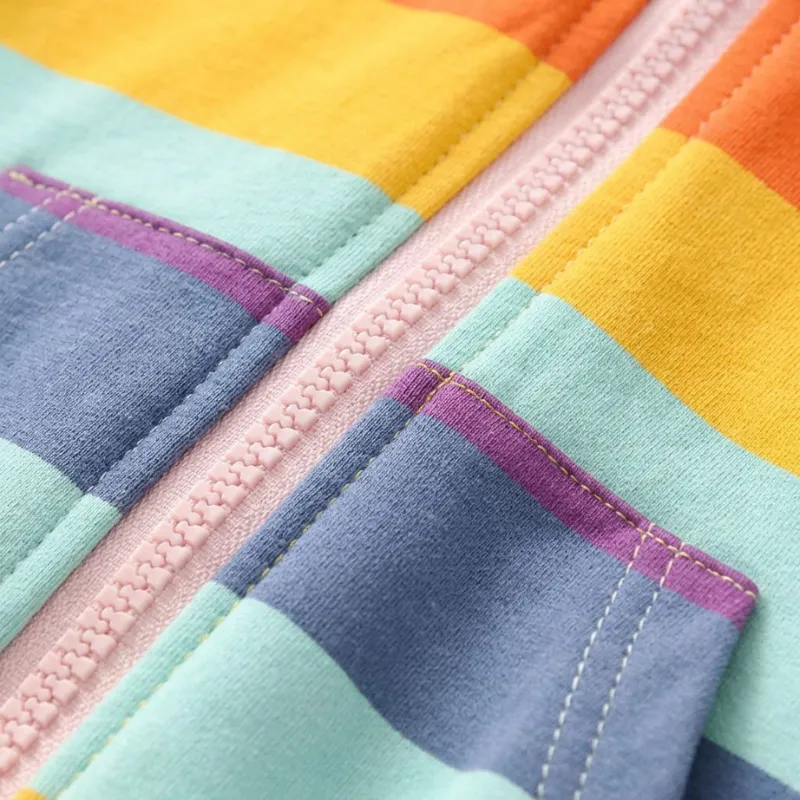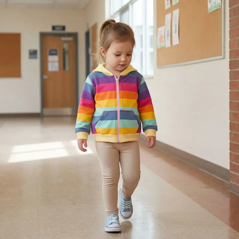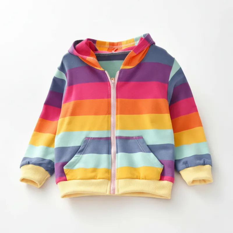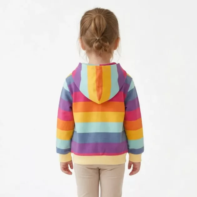 Am luat acest hanorac curcubeu pentru ieșirile de primăvară. Se potrivește bine peste tricouri subțiri, iar bumbacul îl ține pe copilul meu confortabil în zilele lungi prin parc.