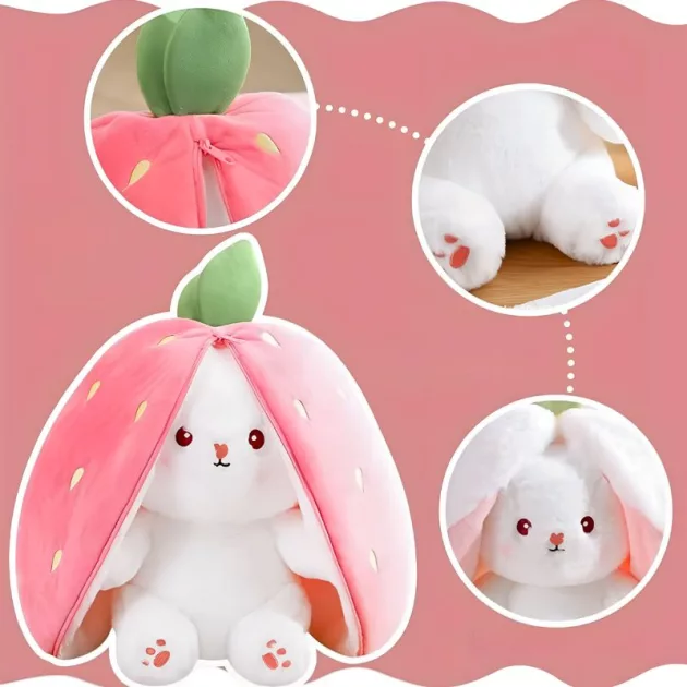 Acest iepuraș de pluș oferă un design reversibil unic, pentru un timp de joacă mai interactiv. Textura sa ultra-moale asigură un companion pufos pentru somn și momentele de relaxare. Fabricat din materiale durabile și sigure pentru copii, este construit să reziste la nenumărate aventuri. Un cadou emoționant care aduce bucurie și confort în lumea copilului tău!