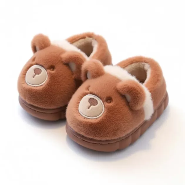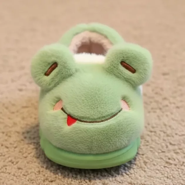 Papuci de casă călduroși, plușați, impermeabili, cu talpă groasă pentru copii