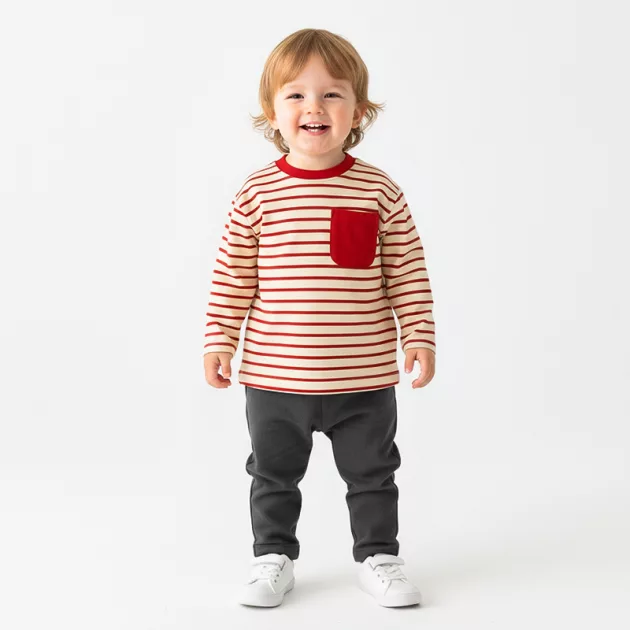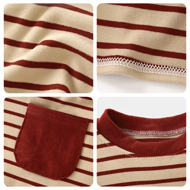 Am cumpărat acest tricou cu dungi pentru ieșirile din weekend. Copilul meu l-a purtat toată ziua fără nicio nemulțumire. Materialul elastic îi permite să sară și să se joace liber.