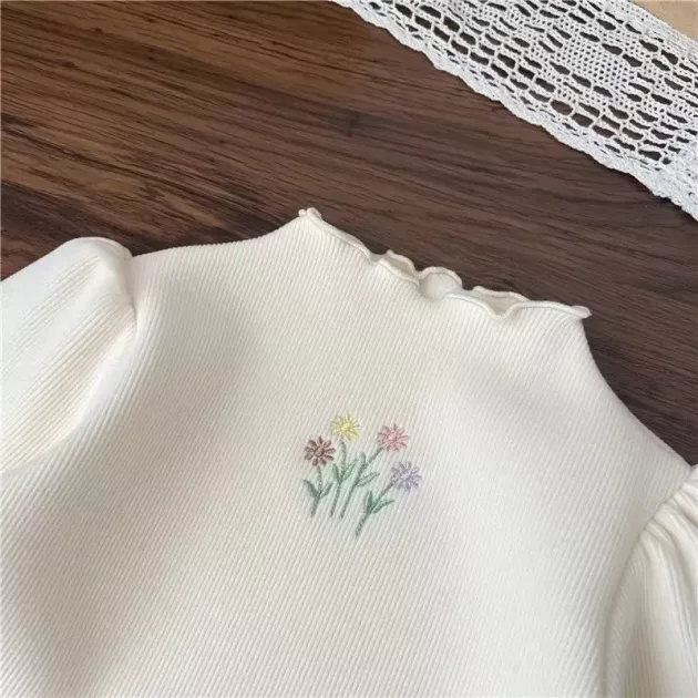 Design Fermecător - Mânecile bufante drăguțe adaugă o notă finală deosebită. Broderia unică cu flori aduce zâmbete și complimente oriunde merge copilul.