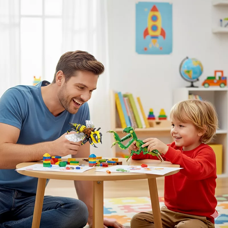 Pur și simplu ador cum piesele diferite se transformă în insecte amuzante. Copiii mei inventează povești în timp ce construiesc, ceea ce e minunat pentru imaginația lor.