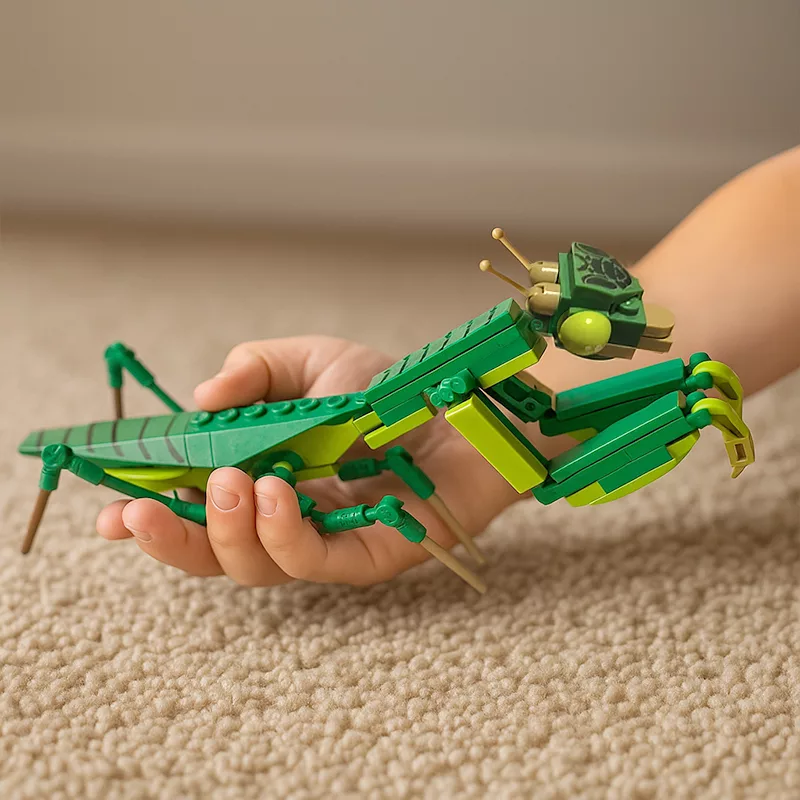 Mânuțele mici pot prinde ușor blocurile. Băiatul meu e foarte mândru de fiecare dată când termină o insectă nouă. Merită fiecare ban.