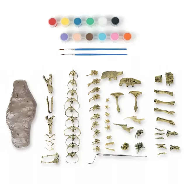 Ador știința și acest kit de dinozaur e perfect pentru construit și pictat. Acum știu unde merg oasele T-Rex-ului. E super tare!