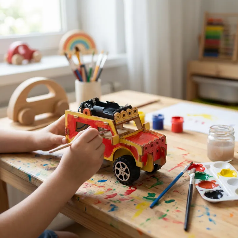 Construirea acestui model din lemn stârnește instantaneu entuziasm și curiozitate. Fiecare parte este concepută pentru a inspira gândirea practică și îndemânarea. Copiii se simt mândri când proiectul lor se mișcă și funcționează. Părinții se bucură să vadă cum abilitățile se dezvoltă chiar sub ochii lor.