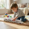 Jucăria cu trenul este super distractivă! Frățiorul meu adoră să urmărească trenul cum ia curbe singur. Luminile îl fac entuziasmant de fiecare dată când trece.
