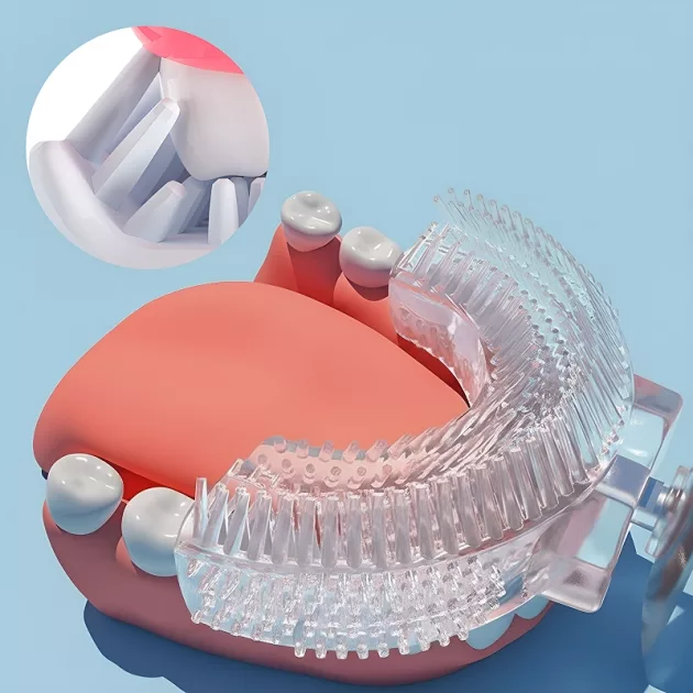 Periuța în formă de U este atât de silențioasă, rapidă și ușor de folosit, încât fiului meu nu-i mai pasă să se spele pe dinți.