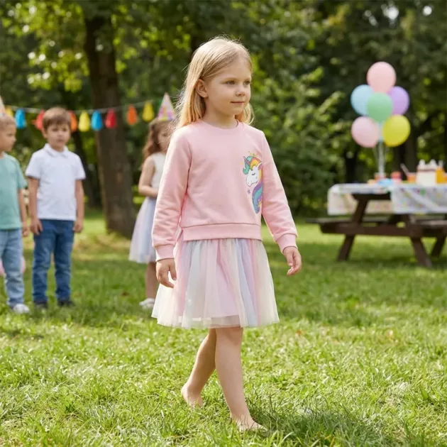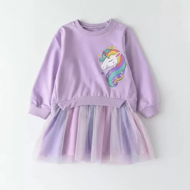 Rochia din bumbac cu unicorn e perfectă pentru weekenduri. Poate sări, dansa și alerga fără să-i fie cald sau să o jeneze.