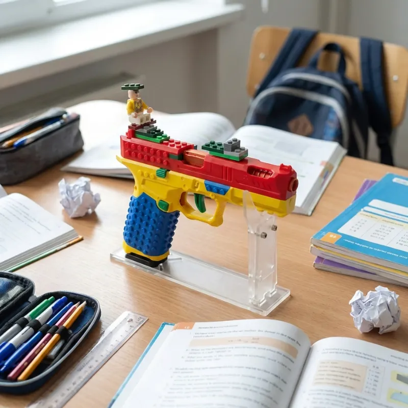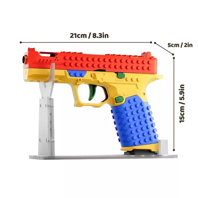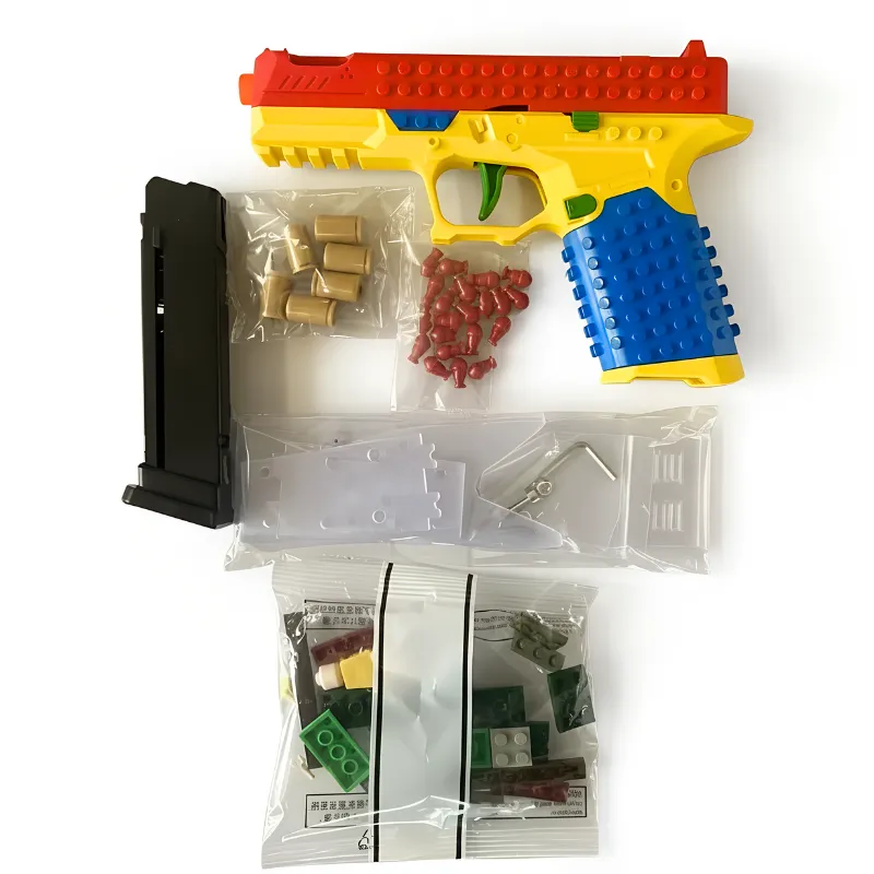 Blocuri foarte tari! Pot să le adun în cutie după ce termin. Fratele meu construiește turnuri, iar eu fac forma de pistol. Schimbăm idei mereu.